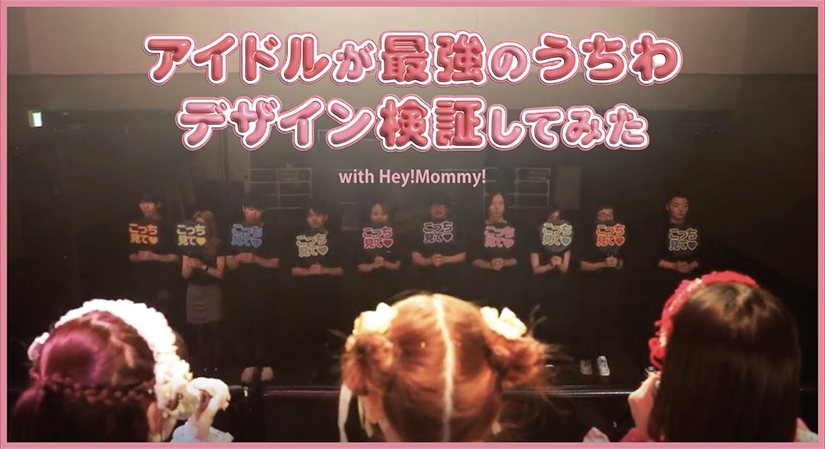 検証には、アイドルグループ・Hey! Mommy!(ヘイマミー)が協力。実際に歌って踊りながらどのうちわが見やすいか選びます。